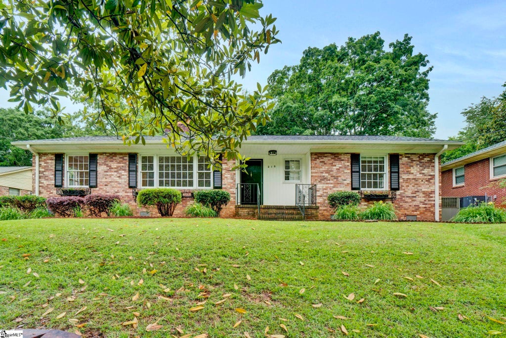 Welcome home to this beautifully updated brick ranch, full of charm and character and nestled in an established neighborhood with incredible curb appeal. Step inside to discover a thoughtfully renovated interior featuring original gleaming hardwood floors and a large bay window that fills the living room with natural light. There's ample space off of the living room for a formal dining room, perfect for hosting. The completely new kitchen is a dream—featuring stainless steel appliances, granite countertops, and custom cabinetry—all opening to a cozy den with a striking exposed brick fireplace. Just beyond, a bright sunroom offers a peaceful spot to unwind and includes a tucked-away laundry closet for added convenience. Down the hall, you'll find three spacious bedrooms and two stunning full bathrooms that are true showstoppers. Featuring refinished original tile, they flawlessly blend retro 1960s style with modern updates—ideal for vintage design lovers. Situated on a level ¼-acre lot with mature trees and a fully usable backyard, this home has both style and substance. Plus, a convenient location just minutes from Conestee Park and Nature Preserve, vibrant Downtown Greenville, and Prisma Hospital. This is a true gem - schedule your showing today!