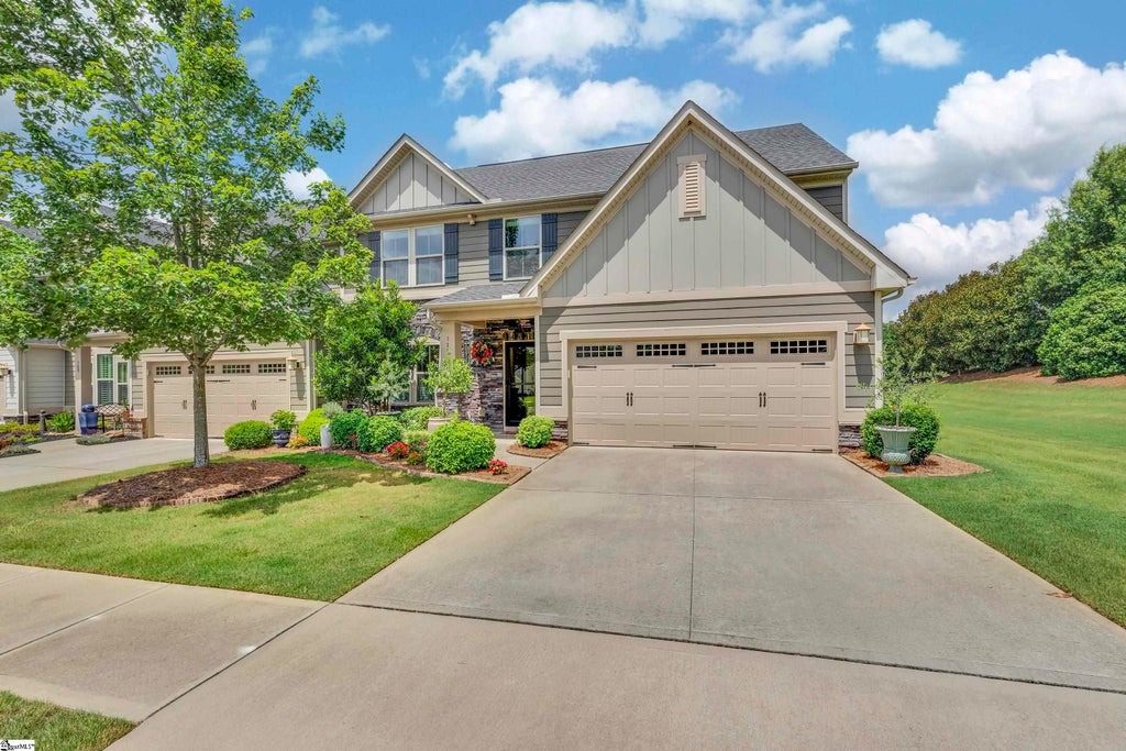 Conveniently located in the heart of Five Forks, this stunning craftsman style home is a must see! This end-unit townhouse offers spacious two-story living with 4 bedrooms and 2.5 bathrooms. The open floor plan on the main level is perfect for entertaining—cozy up by the gas log fireplace or step out onto the custom built screened-in porch, which leads to a fenced-in backyard. Best part of all? No yard work! HOA provides lawn maintenance services. The kitchen features a large island with granite countertops, a tile backsplash, beautifully upgraded, top of the line appliances, and a walk-in pantry with built-in storage. Enjoy the convenience of a separate laundry room equipped with Samsung washer and dryer. Beautiful hardwood floors run throughout the main level, staircase, and first-floor primary suite. The primary suite boasts a luxurious trey ceiling, an upgraded full bath with double vanity, large beautifully tiled shower and a spacious walk-in closet. Upstairs, you’ll find three carpeted bedrooms, a loft area, a full bath, and an easily accessible walk-in attic with tons of storage space! Natural light fills the home, enhanced by recently added sun tunnels and new window treatments throughout. Located in a well-maintained community with sidewalks and inviting common areas, this home is ready to welcome you.