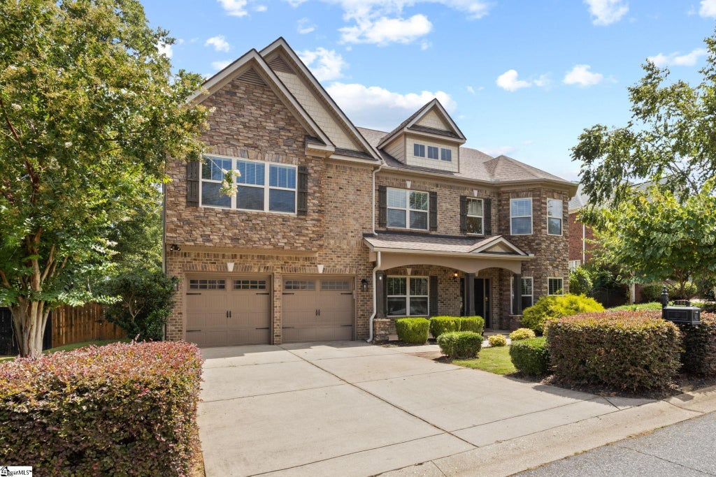 This beautiful maintained two-story stunner makes the perfect sanctuary for todays homeowner, offering thoughfully designed spaces tailored for relaxation, entertaining and effortless day-to-day living. Step through the welcoming foyer and immediately feel the sense of grandeur under high vaulted ceilings adorned with crown molding. The vaulted ceiling continue into the family room complete with gas fireplace and built-in bookshelves. The open-plan kitchen with granite countertops, abundant storage, breakfast area and walk-in pantry. The home features one bedroom on main level complete with full bath. Main level also features office/den adorned with coffered ceilings. On the other side of foyer a formal dining room, perfect for entertaining friends and family. Upstairs you will find a loft landing with catwalk over-looking the beautiful great room. The spacious primary offers sitting area complete with gas fireplace. Primary bath with double sinks, lots of counter space and two large walk-in closets. Upstairs also has two other spacious bedrooms with full bath. between the rooms. Walk-in laundry room is conveniently located upstairs as well. Great location! Simpsonville, Five Forks and Fountain Inn minutes away.