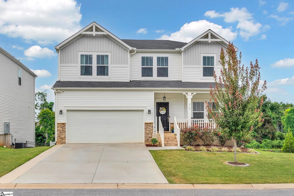 Hard to find finished basement home!! Welcome to 315 Pewter Circle, a spacious 5 bed, 3.5 bath home in the highly desirable Highland Chase community. Homes with finished basements are rare, and this one checks all the boxes! The main level welcomes you with a flex room, ideal for a home office, playroom, or sitting area. The open-concept layout features a large living room with a gas fireplace that flows into the gourmet kitchen with granite countertops, white cabinetry, walk-in pantry, and oversized center island. Natural light fills the space, with direct access to a covered/screened deck overlooking the backyard. Upstairs offers a loft, a luxurious owner's suite with tray ceiling and walk-in closet, plus three additional bedrooms and two full baths. The fully finished basement adds even more living space with a fifth bedroom, full bath, large flex room, walk-out access, and extra storage. You'll love all this home has to offer inside and out, with generous storage, fenced in yard, and a 2-car garage. Conveniently located minutes from top-rated schools, shopping, dining, and an easy drive to Downtown Greenville. Hurry and schedule your showing today!